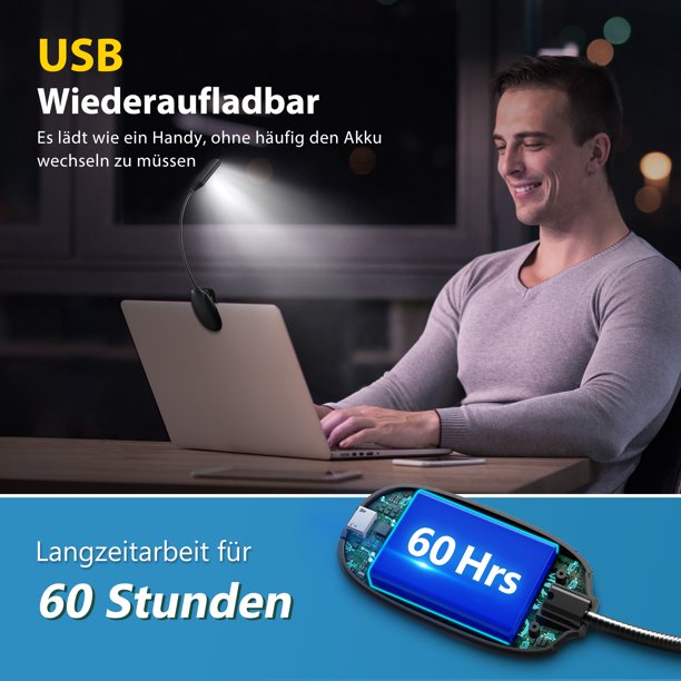- 【Up to 60 Hours Lightning Time】TOPELEK reading light is built-in 1000mAh battery provides up to 60 hours lighting time by only charging about 1.5 hours. This energy-saving lamp with large capacity battery can stand by for a long time, which is helpful for many outside activities when electric power is unavailable.